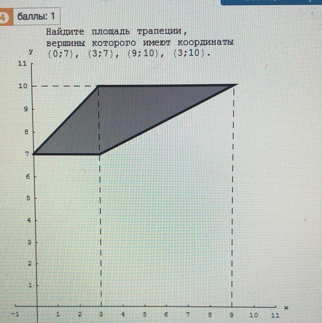 Площадь трапеции это половина оснований умножинач на высоту, т.е 1/2×(3+6)×3= 13.5