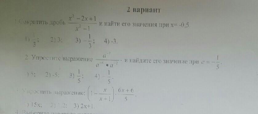 1. Сократить дробь х²-2х+1/х²-1 и найти его значение при х=-0,5