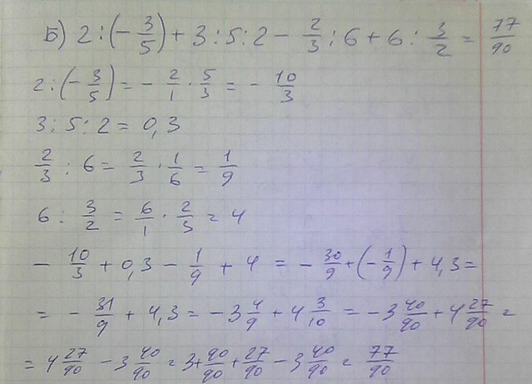 Б) 2:(-3/5)+3/5:2-3/2:6+6:3/2