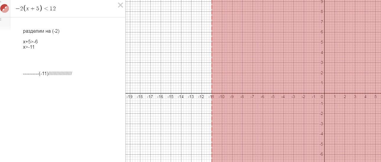 Решите на множестве r неравенство и изобразите множество решений на числовой оси: -2*(x+5)<12