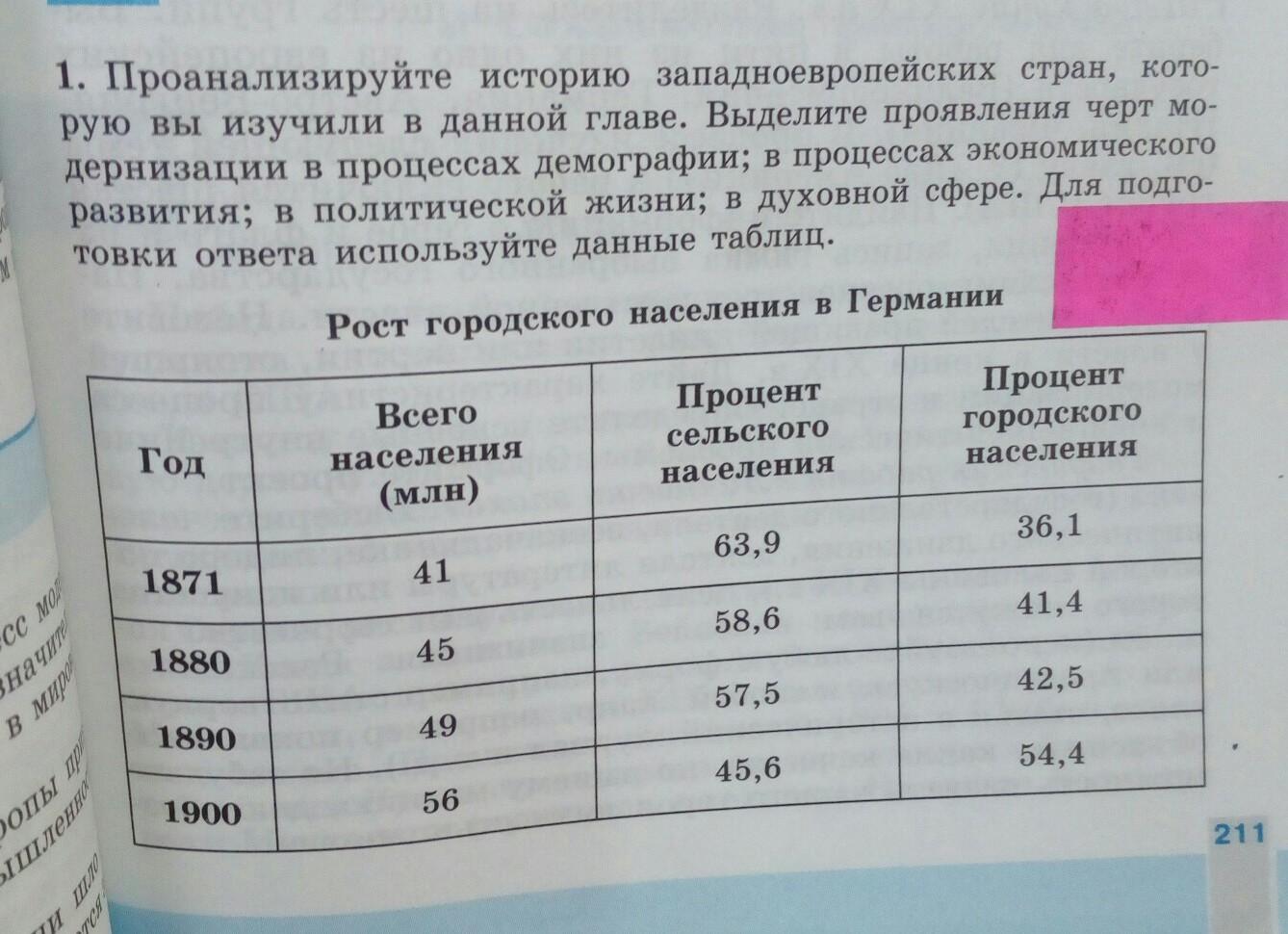 в процессах демографии: увеличение численности городского населения, появление новых общественных слоев и классов, увеличение продолжительности жизни населения, повышение среднего уровня образования;