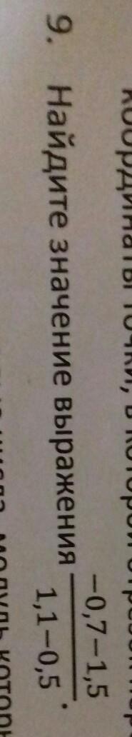 frac{-0.7-1.5}{1.1-0.5}=frac{-(0.7+1.5)}{0.6}=frac{-2.2}{0.6}=frac{-22}{6}=frac{-11}{3}=-3frac{2}{3}
