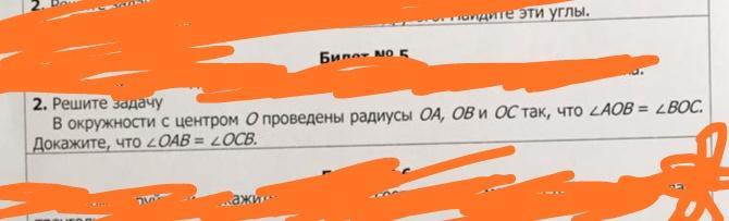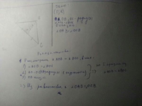 в окружности с центром o проведены oa ob и oc так что угол aob равен углу boc Докажите что угод oab равен углу ocb