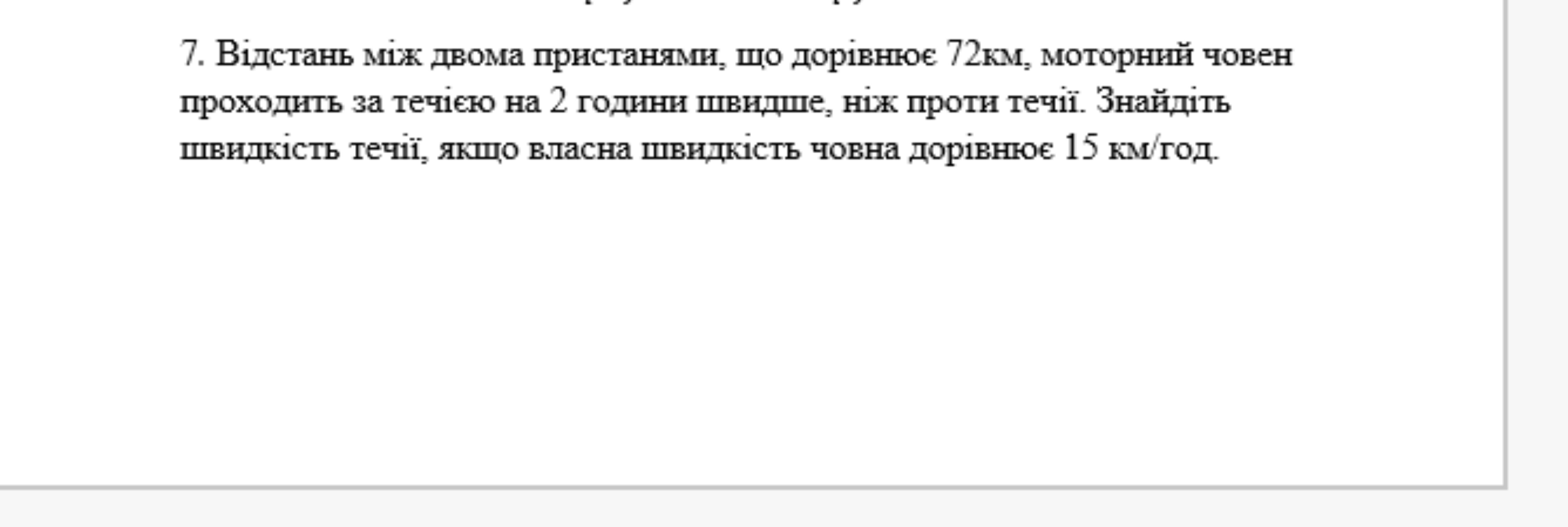 x1=(-72-78)2=-75(швидкість течії річки невідємна величина, отже цей корінь не підходить)