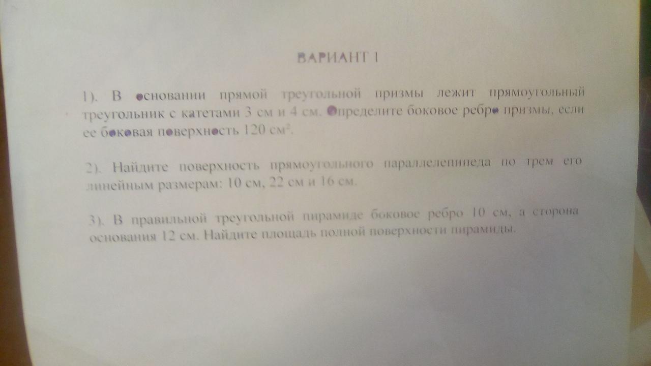 2. Пусть а = 10 см, b = 22 см и с = 16 см - измерения прямоугольного параллелепипеда.