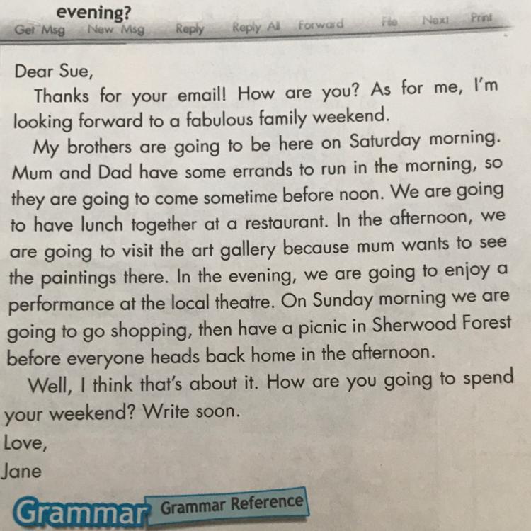1.Каких семейных выходных ждет Джейн?(невероятных)