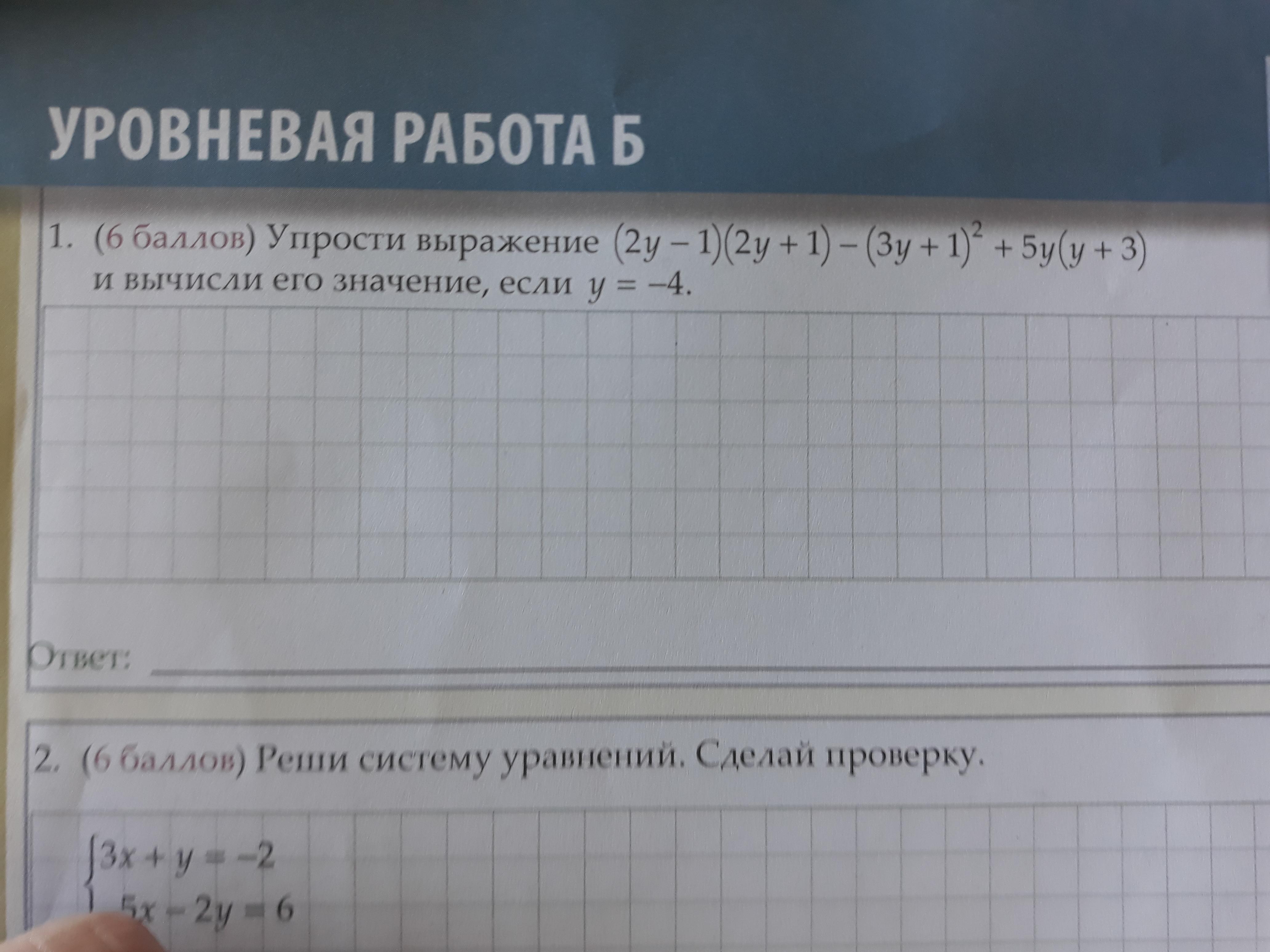 2. (2•-4-1)•(2•-4+1)-(3•-4+1)^2+5y(y+3) = 5y^2+15y-58