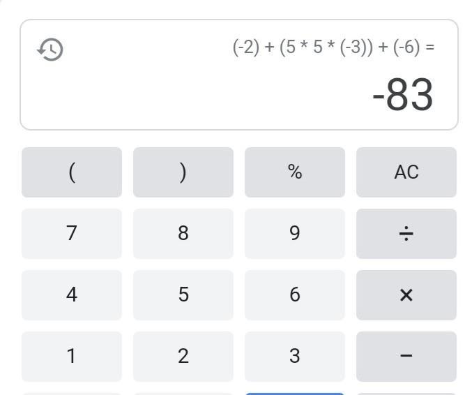 -2 + 5*5*(-3) + (-6) = -2 - 6 + -75 = -83