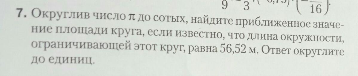 Площадь круга равна ~254 кв.м