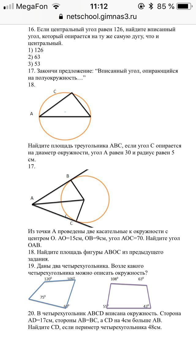 17. ...равен половине центрального угла, опирающегося на ту же полуокружность