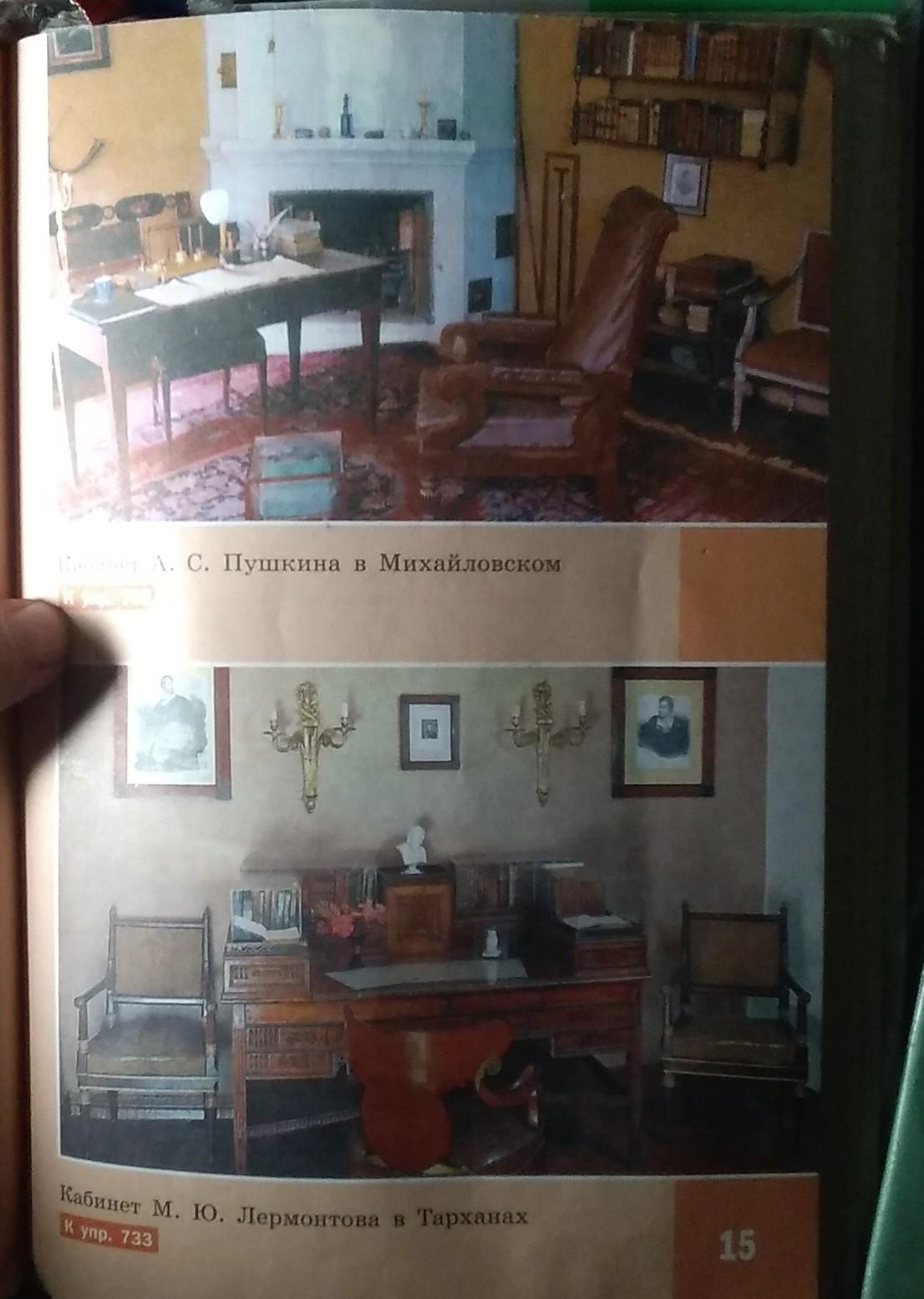 2 картинка:Большой письменный стол занимает центрально место в кабинете поэта. На столе книги русских и иностранных авторов, фарфоровая чернильница в виде льва и печатка-ножичек, принадлежавшие поэту, копии произведений Лермонтова, написанных в Тарханах. Зимой 1836 года он работал здесь над драмой "Два брата", поэмой "Сашка", стихотворением "Умирающий гладиатор".