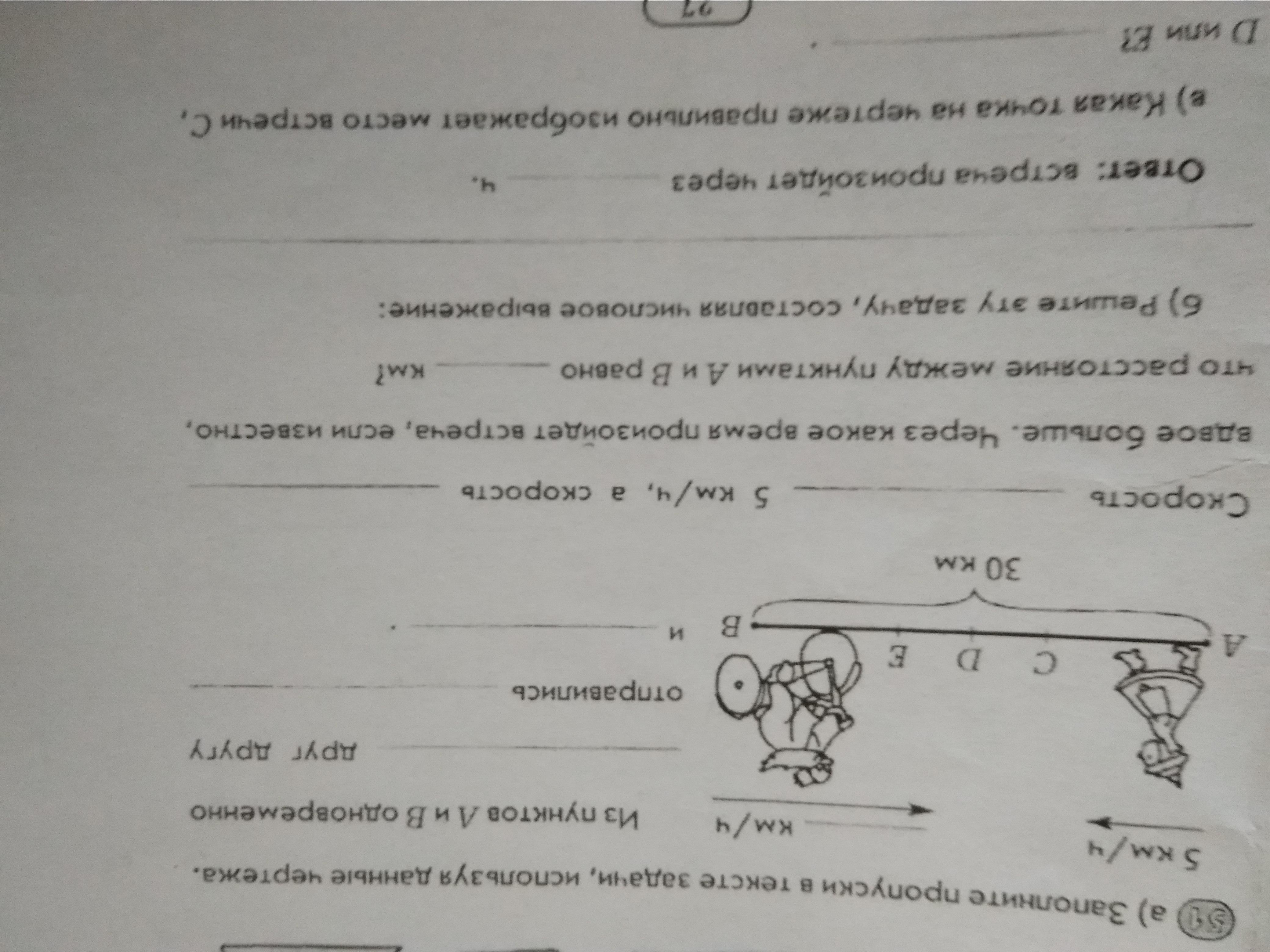 навстречу, девочка, велосипедист, девочки велосепидиста, 30 км, решение: 5×2=10 км/ч скорость велосипедиста, 10+5÷15 км/ч пройдут за 1 час, 30÷15=2 ч. Ответ: девочка и велосепидист встретятся через 2 часа