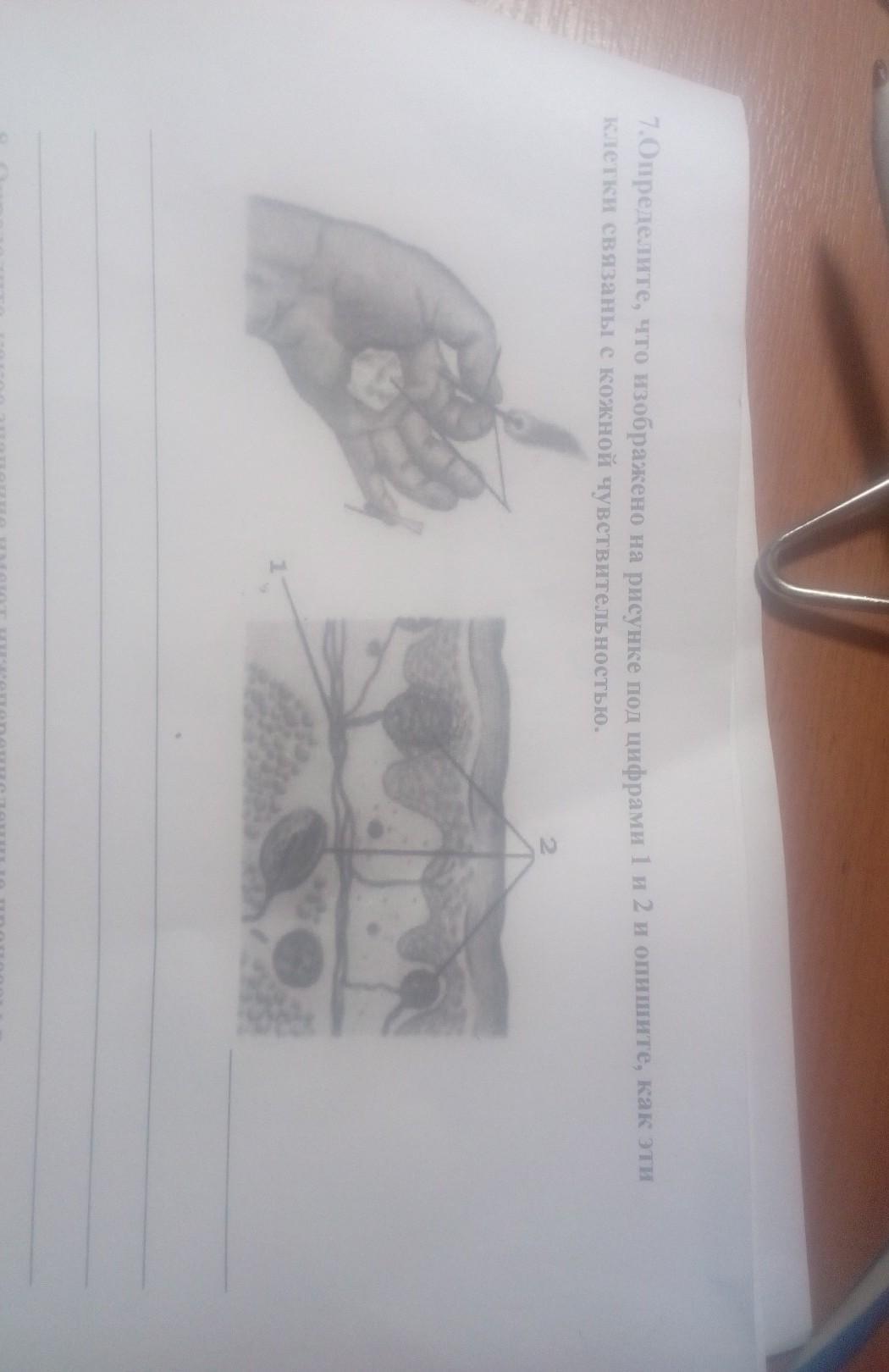 Определите что изображено на рисунке под цифрами 1 и 2 и опишите как эти клетки связаны с кожей чувствительностью
