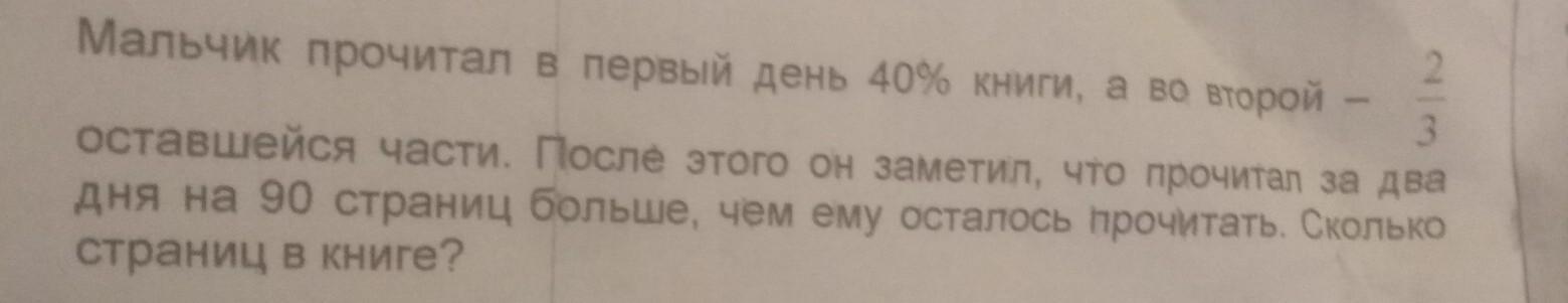 Мальчик прочитал в первый день 40% книги, а во второй -