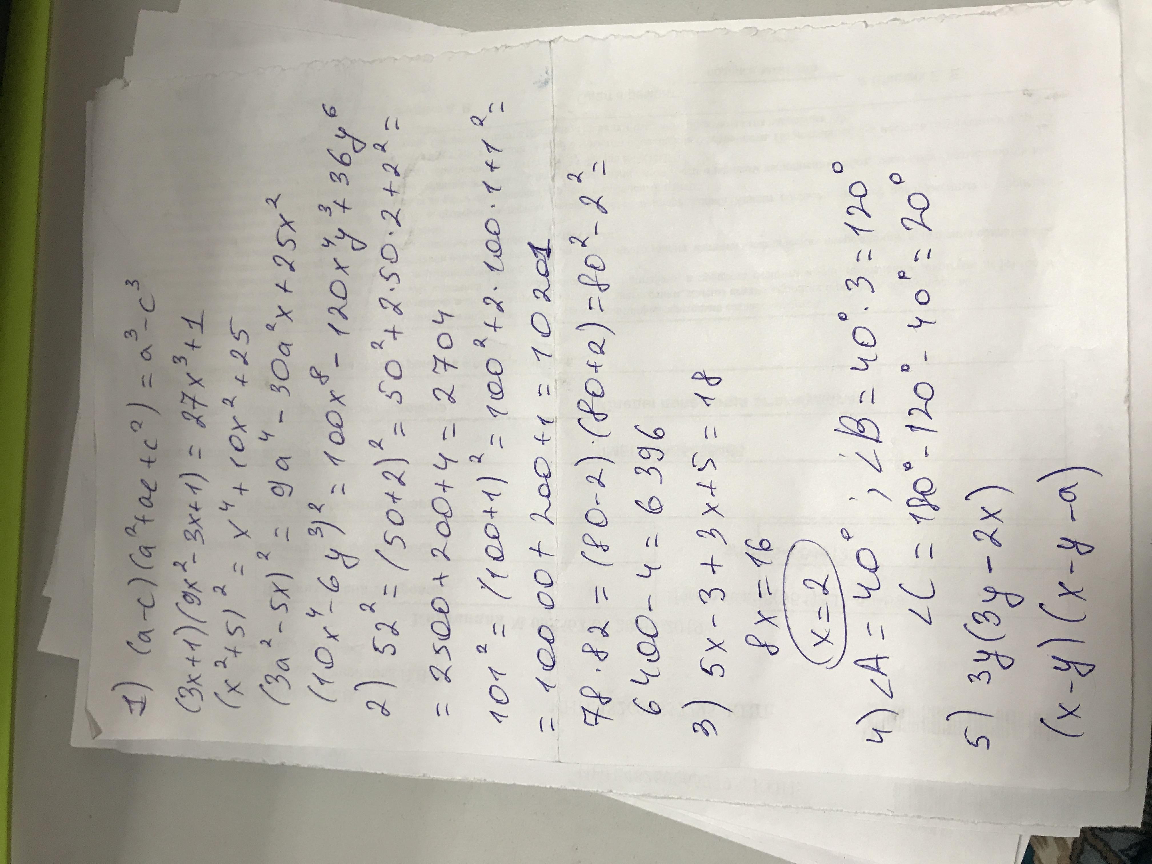 (а – с)(a² + ac + c²)=; (3х + 1)(9x² – 3x+1)=;