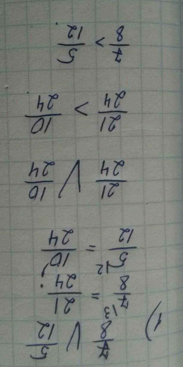 Сравните 7/8 и 5/12. вычислите 5/6×(3/4 - 1/12) СРОЧНО в корзине было 22 сливы . для компота взяли 5/11 всех слив. Сколькко слив осталось в корзине УМОЛЯЮ Я НИЧЕГО НЕ ЗНАЮ