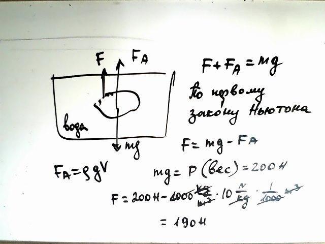 Какую силу надо приложить чтобы поднять под водойкамень весом 200Н