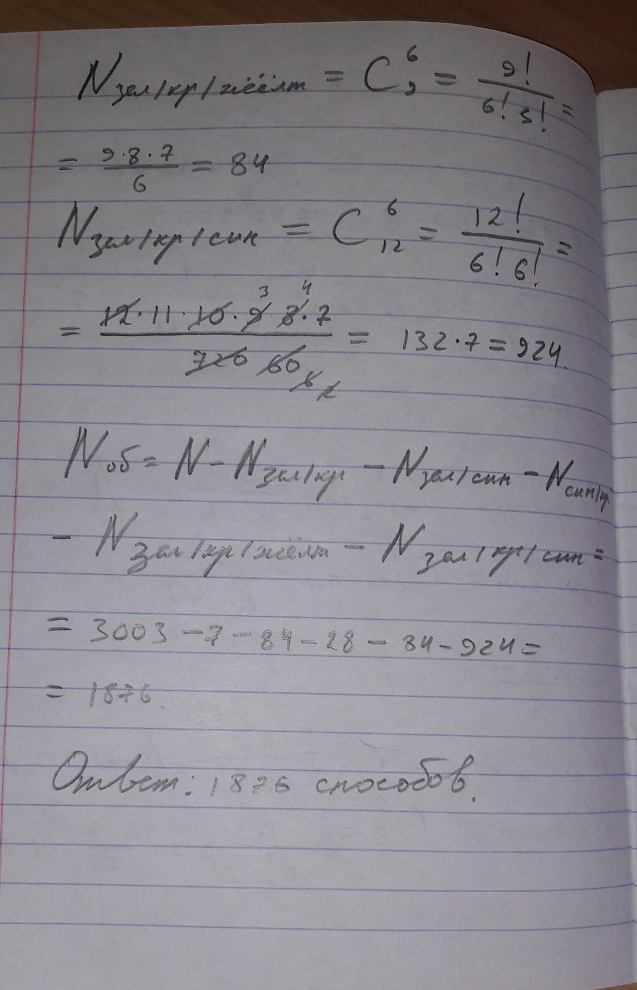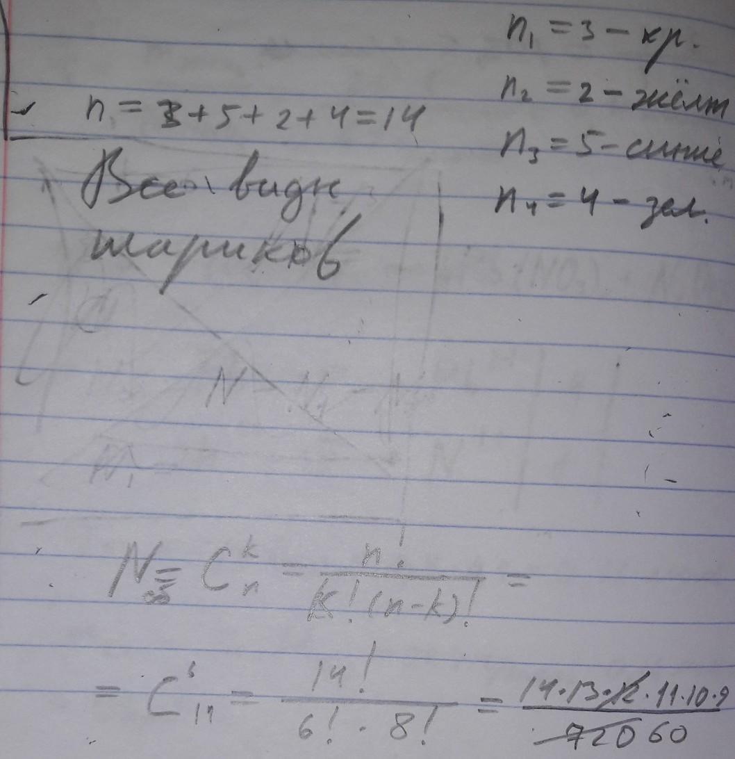 В урне находятся 3 красных, 5 синих, 2 жёлтых и 4 зеленых шара. Сколькими способами можно выбрать 6 шаров, если один из них должен быть синим, а еще один - жёлтым?