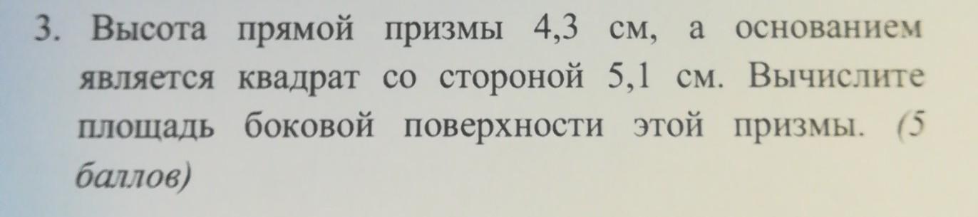 S = P*H = 4*5,1 *4,3 = 87,72 см².