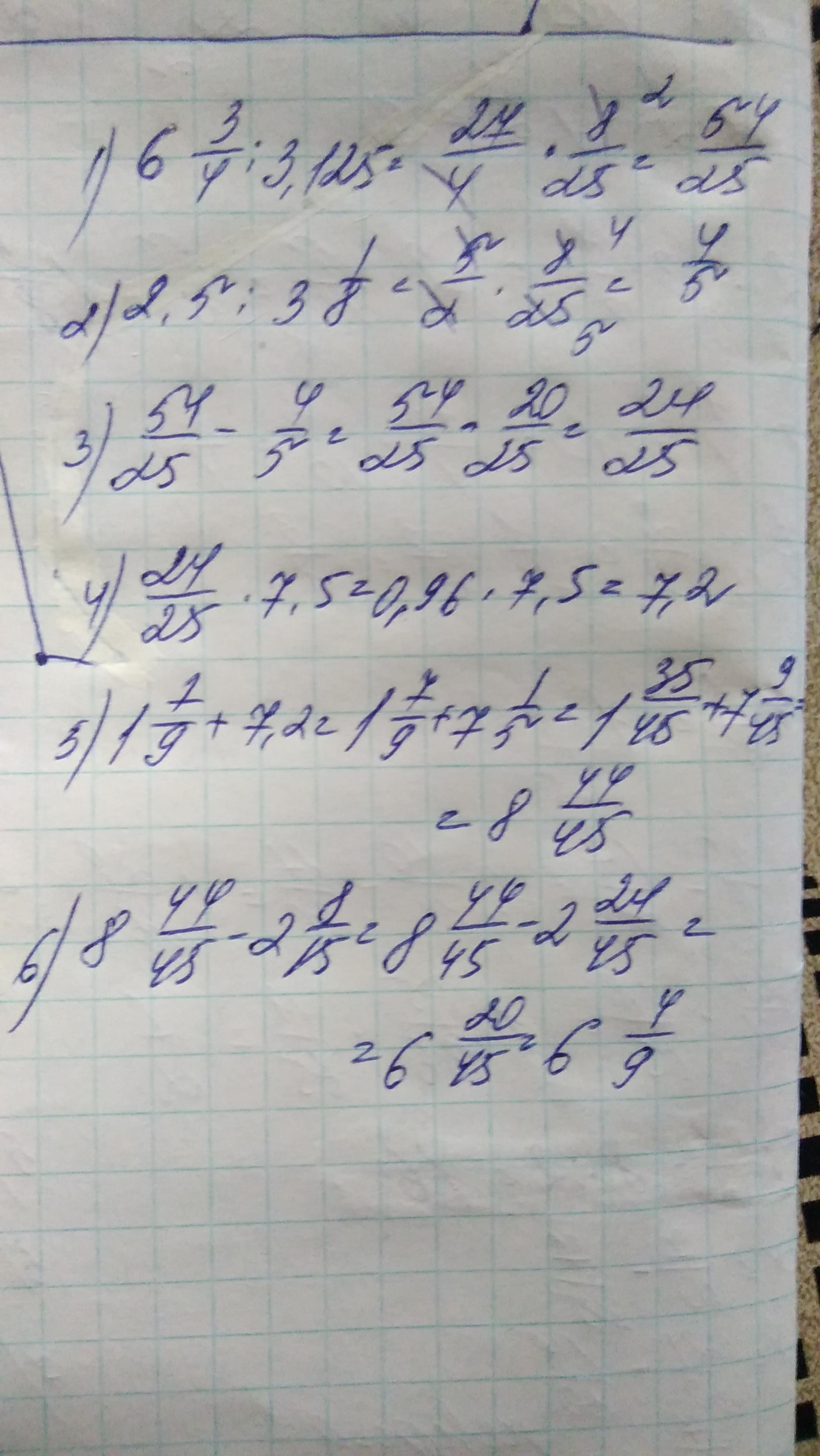 Реши 1 7/9+(6 3/4 : 3.125 - 2.5 : 3 1/8) * 7.5 - 2 8/15