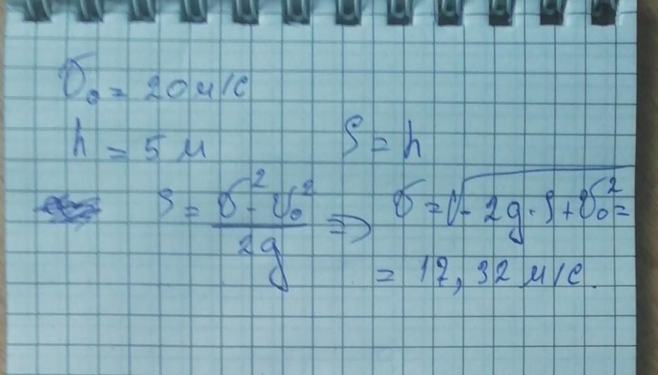 1)М'яч кинули від землі вгору, надавши початкової швидкості 20м/с Визначте швидкість руху м'яча на висоті 5м