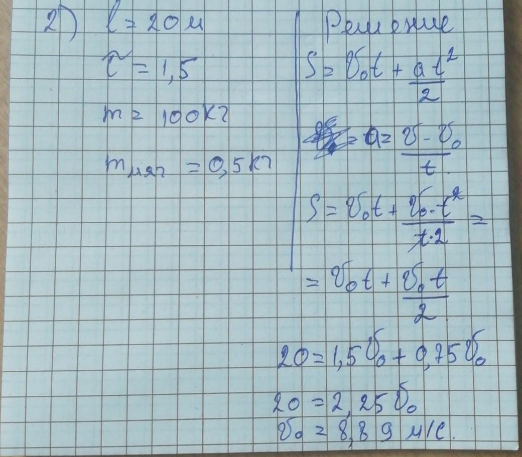 2)Хлопчик, що сидить у човні і ловить м'яч кинутий з відстані 20м, якої швидкості набрав човен ,якщо м'яч перебував у повітрі 1.5с Маса човна з хлопцем 100кг, маса м'яча 500г