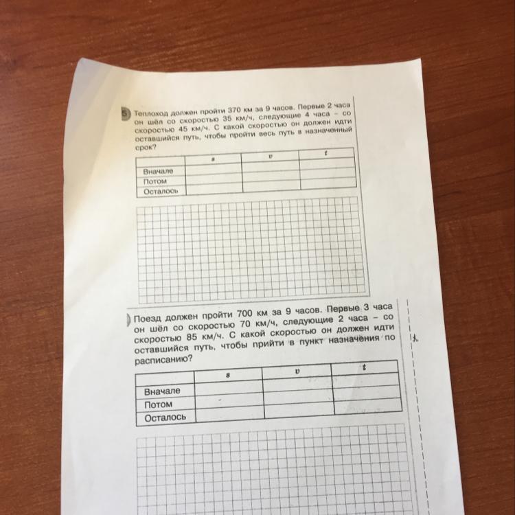 Во второй задаче 700-(70 * 3+ 85 * 2)=320 км, потом 320/(9-5 часов)= 80 км/ч.