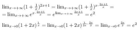 lim стремится к бесконечности lim(1+(1/x))^(2x+1)