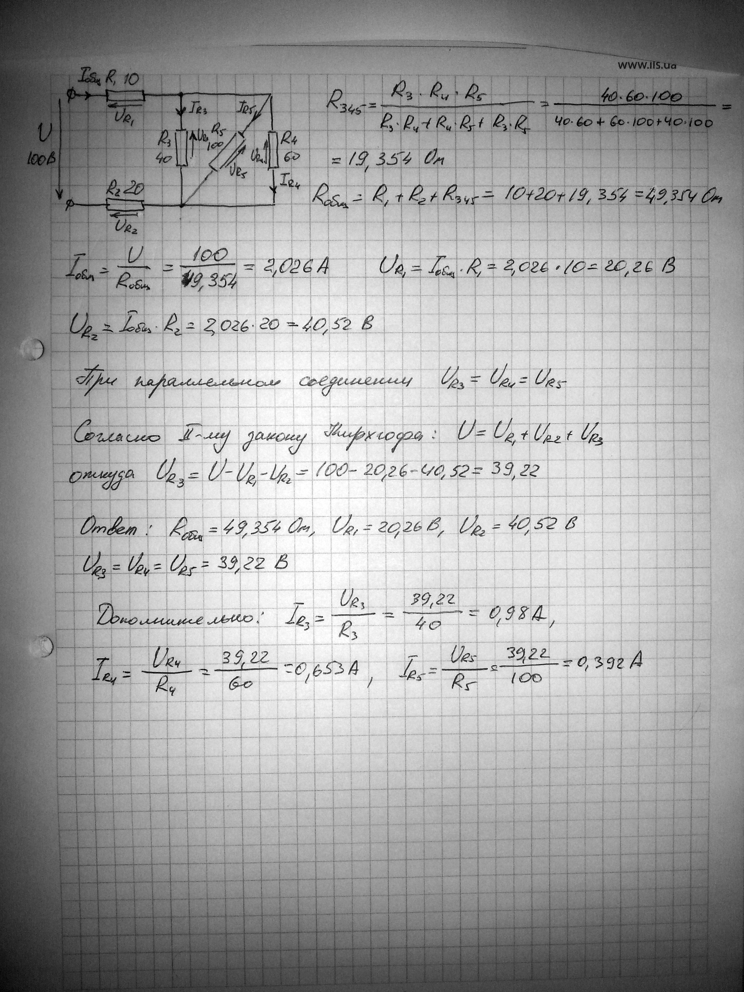 R1=10, R2=20, R3=40, R4=60, R5=100 Ом.