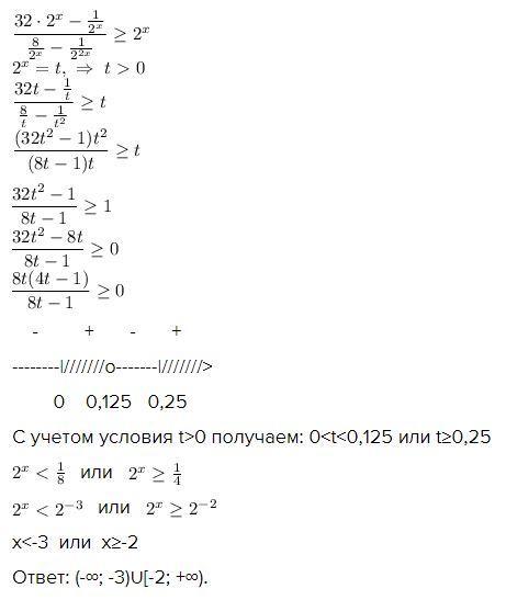 С учетом условия t>0 получаем: 0<t<0,125 или t≥0,25
