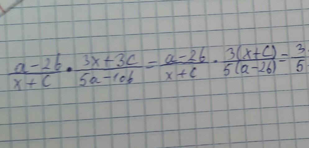 б) =(а-2в)*3(х+с)/[(х+с)*5(а-2в)]= 3/5
