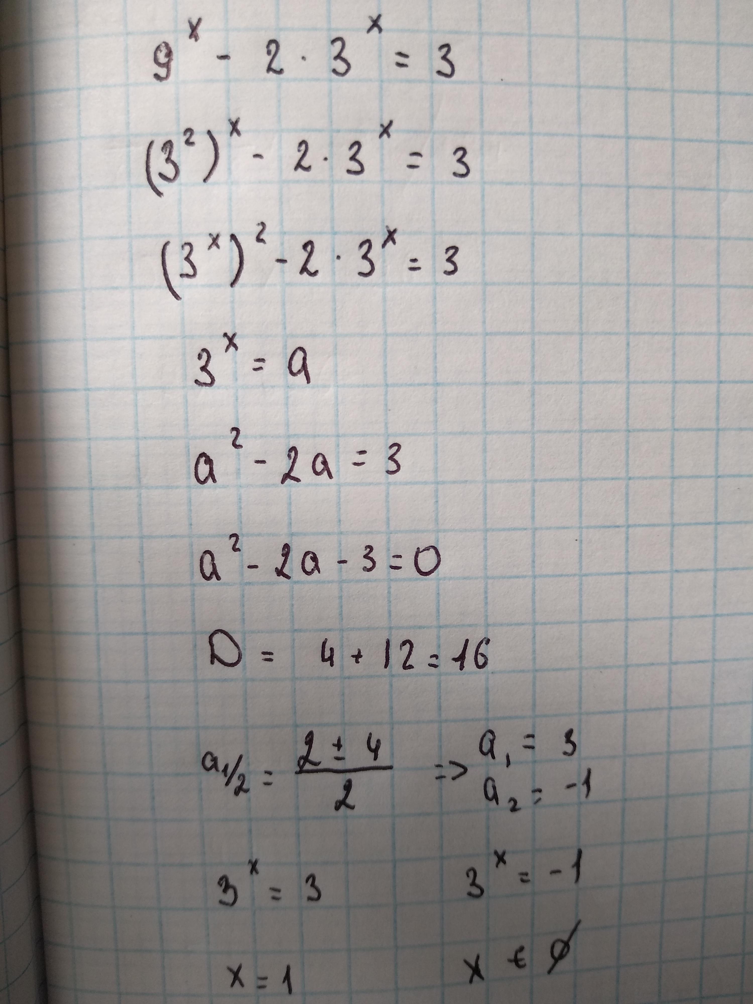 Можешь ещё 9^х -2*3^х=3, только икс в степени