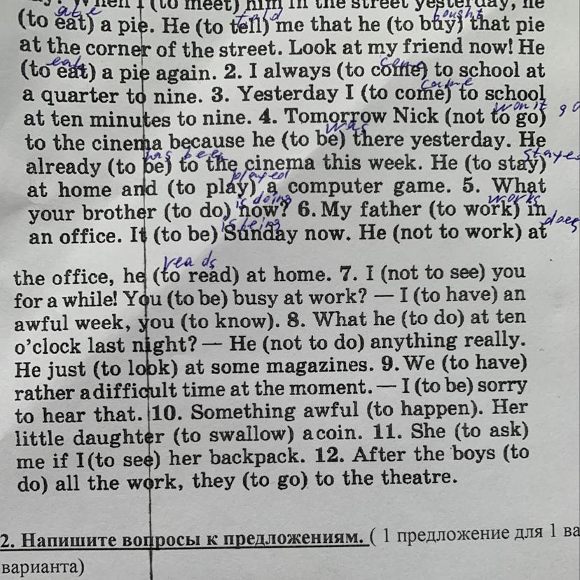 доделываю) 7. didn't see; were; had; knew. 8. is doing; didn't do; looked. 9. are having; was. 10. happened; swallowed. 11. asked; saw. 12. did; went.