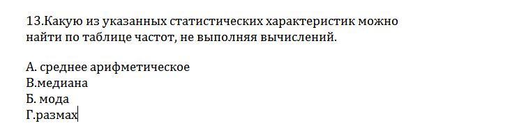 13. Б) Моду.Чтобы найти остальные характеристики, нужно выполнять вычисления.
