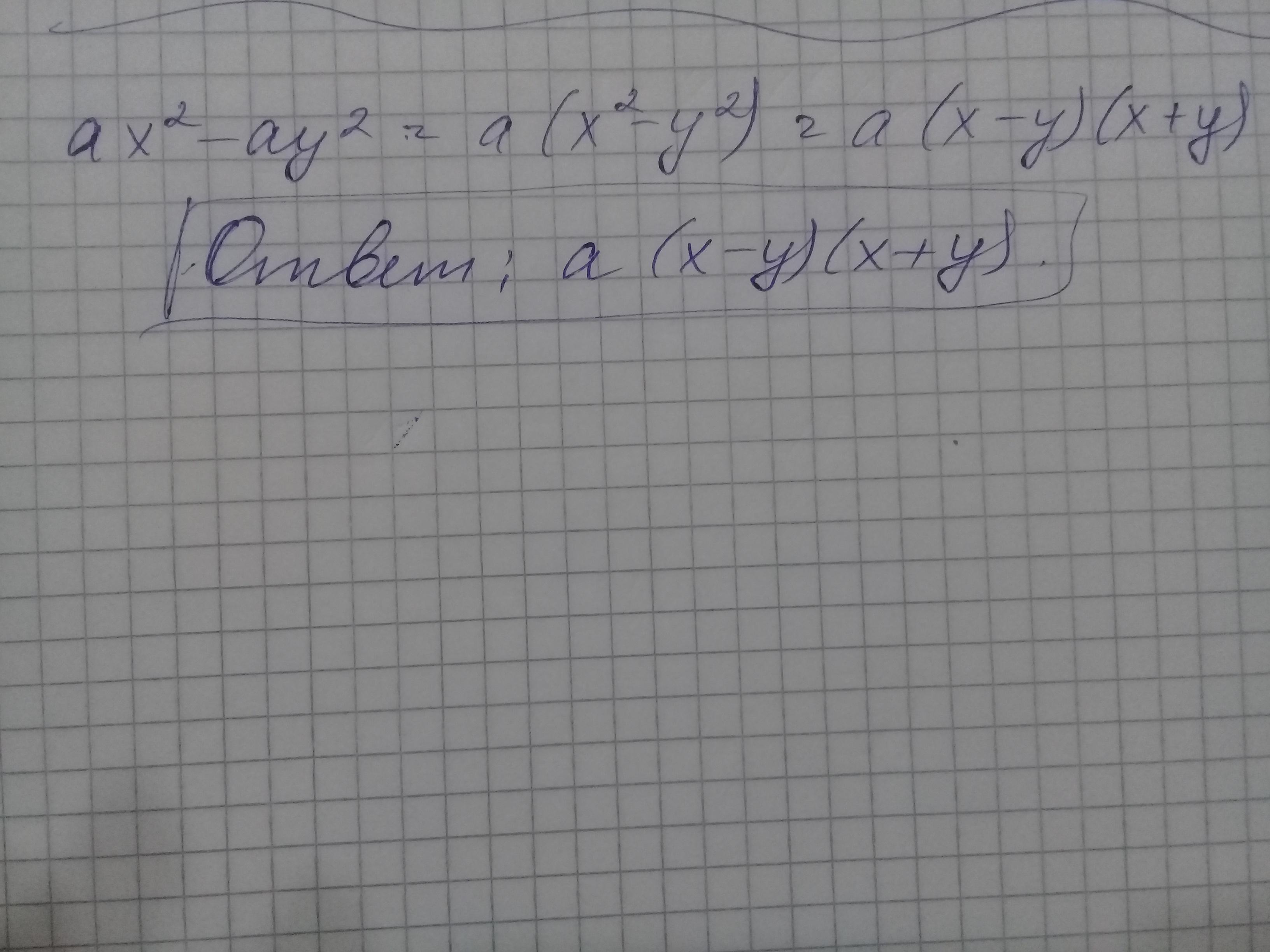 ах²-ау²=а(х²-у²)=а(х+у)(х-у)