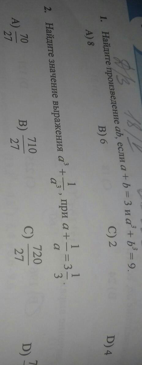 9 = 3·(3² - 3ab); 3 = 3² - 3ab; 1 = 3 - ab; ab = 3 - 1 = 2.