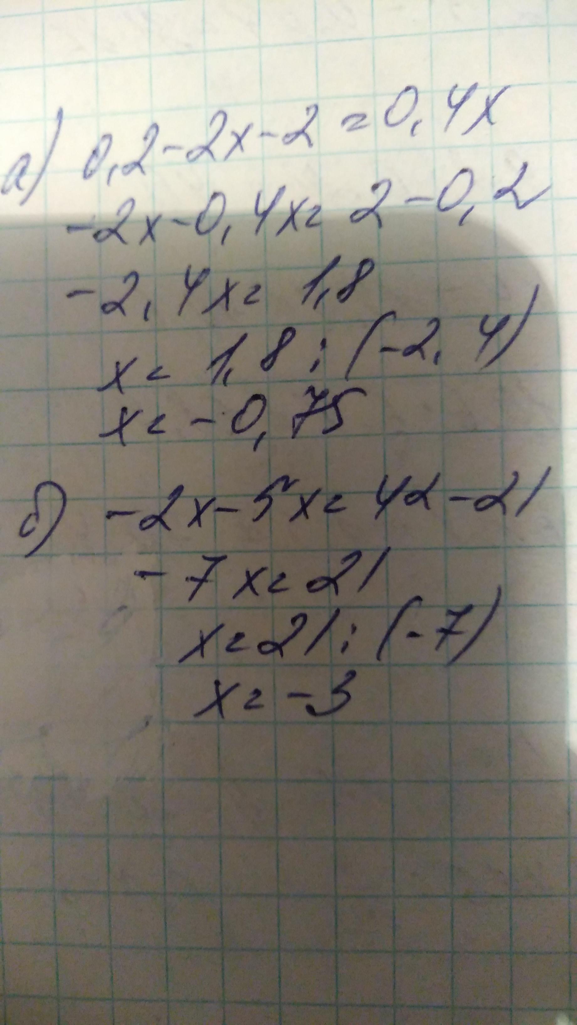 а) 0,2 - 2 * (x + 1) = 0,4x