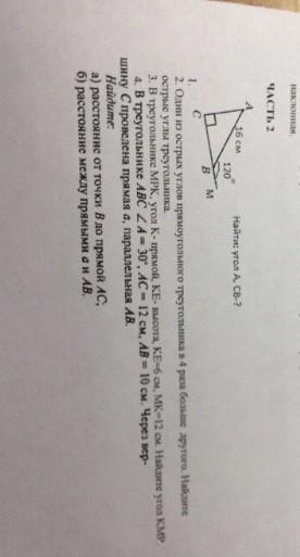 1)угол а=30° т.к развернутый угол 180-120=60°+прямой 90°
