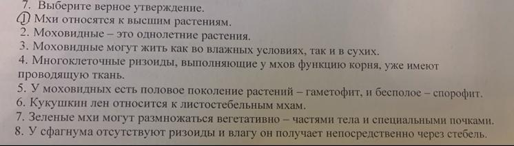 5 верно, у моховидных есть половое поколение растений – гаметофит, и бесполое – спорофит