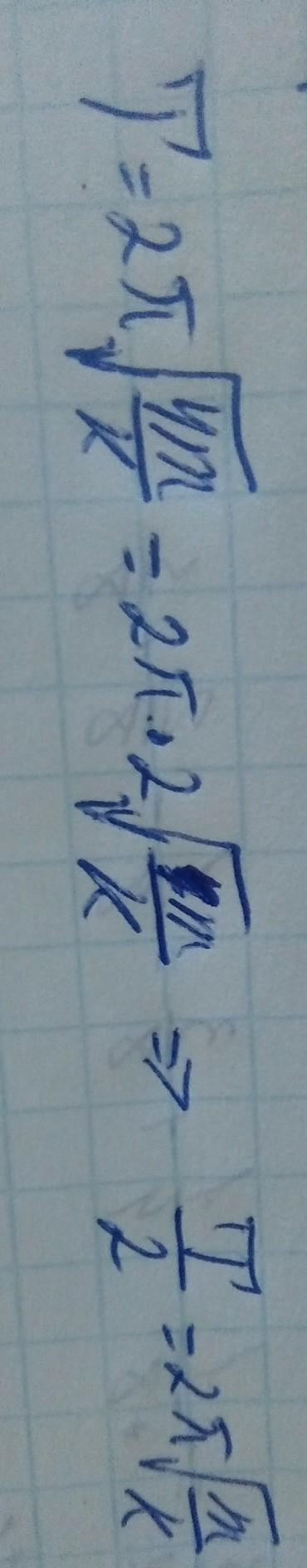 934.Как изменится период колебаний при увеличении массы груза скрепленного к какой-нибудь пружине в 4 раза