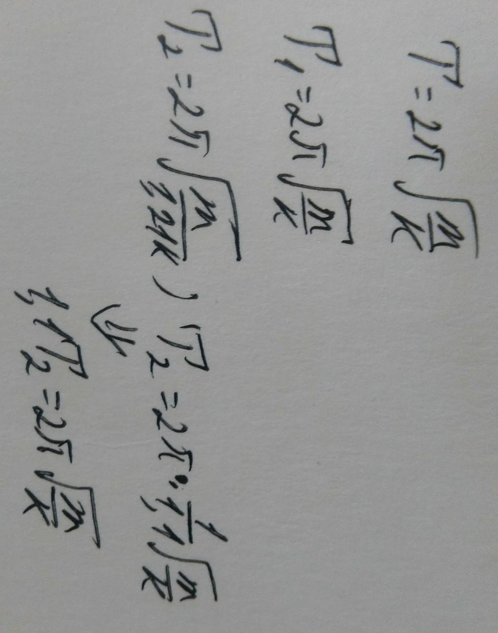 936.груз сперва подвешивают к пружине жесткостью k,а потом к пружине жесткостью 1,21k и приводят в колебание.Сравните периоды колебаний