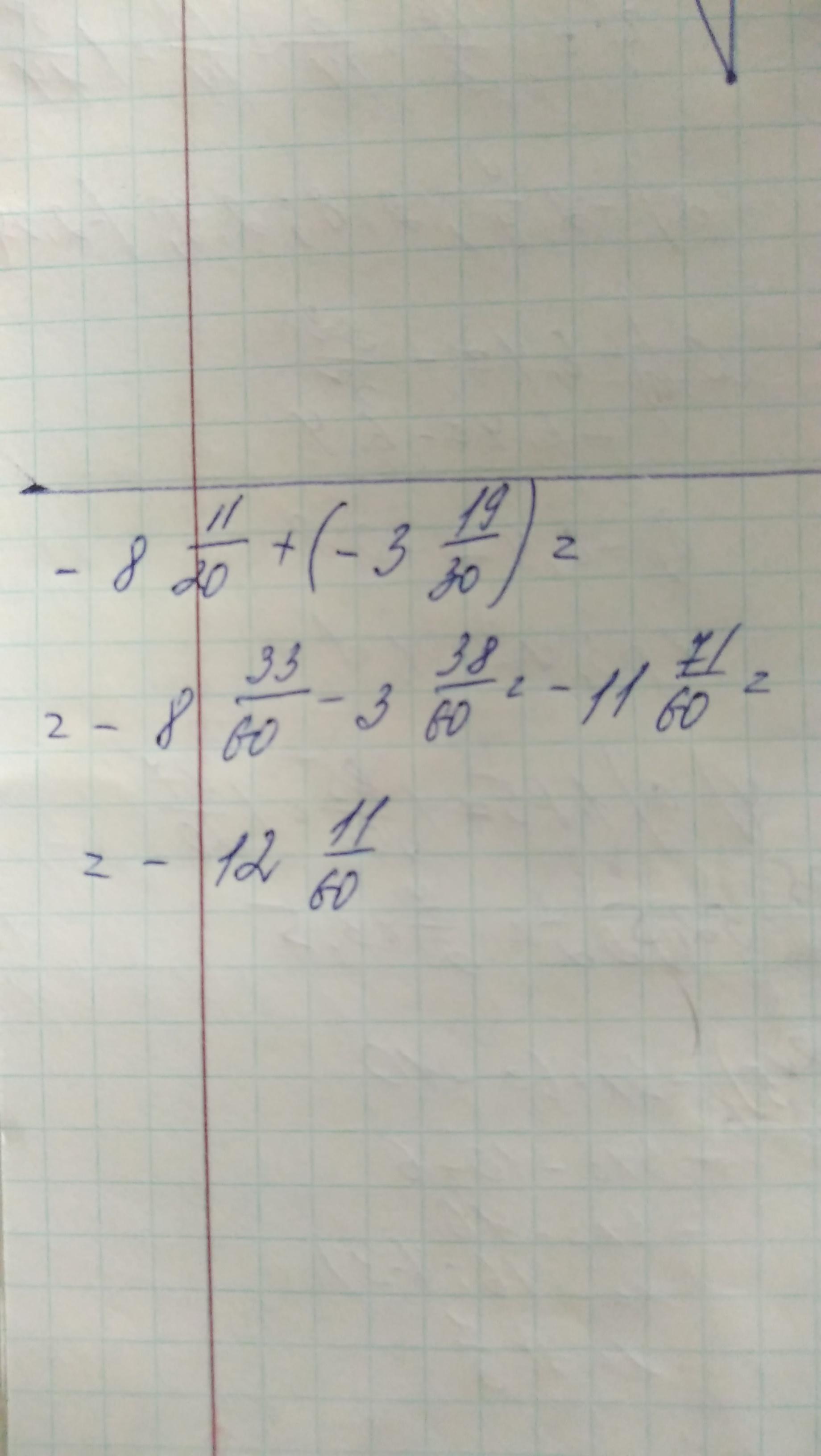 Минус восемь одиннадцать двадцатых плюс скобка открывается минус три целых девятнадцать тридцатых