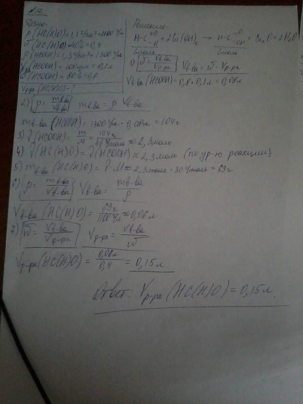 12. Какой объем раствора формальдегида (плотность раствора