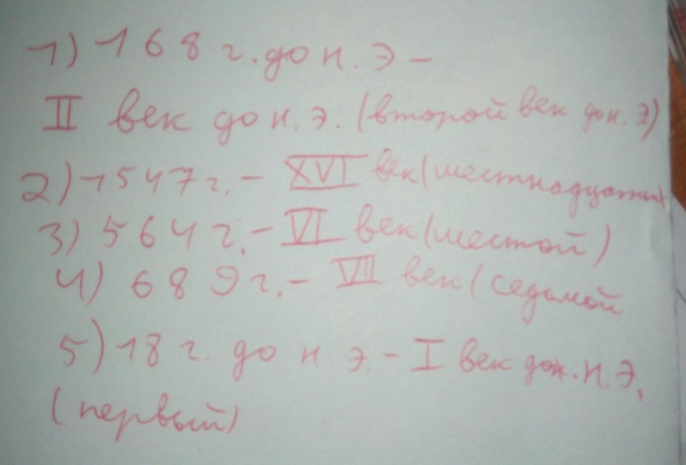 Определите к каким векам относятся следующие даты и запишите римскими цифрами: