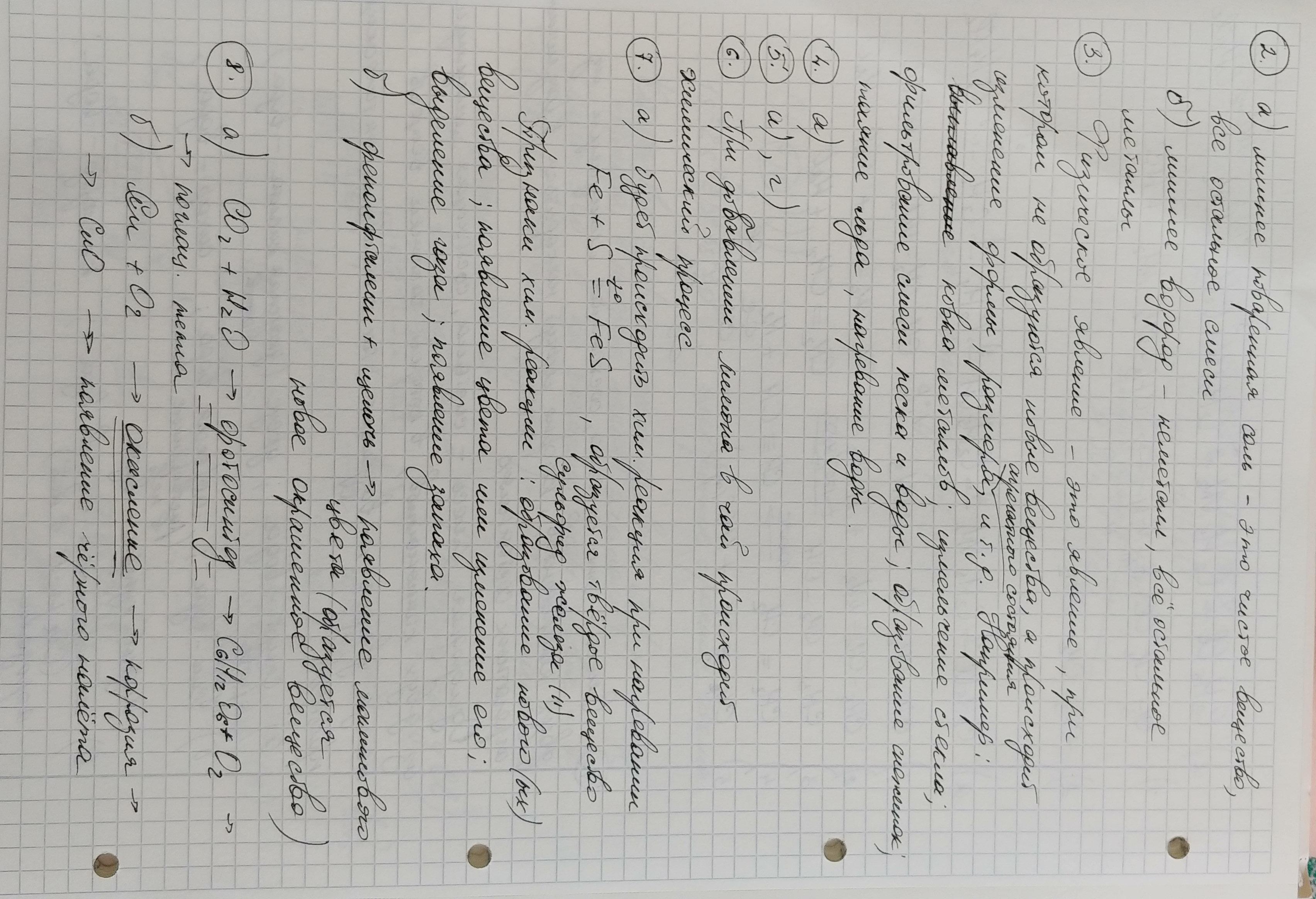 8. Заполните пропуски в логических цепочках по следующему принципу: реагенты → название химической реакции → продукты реакции → признаки химической реакции