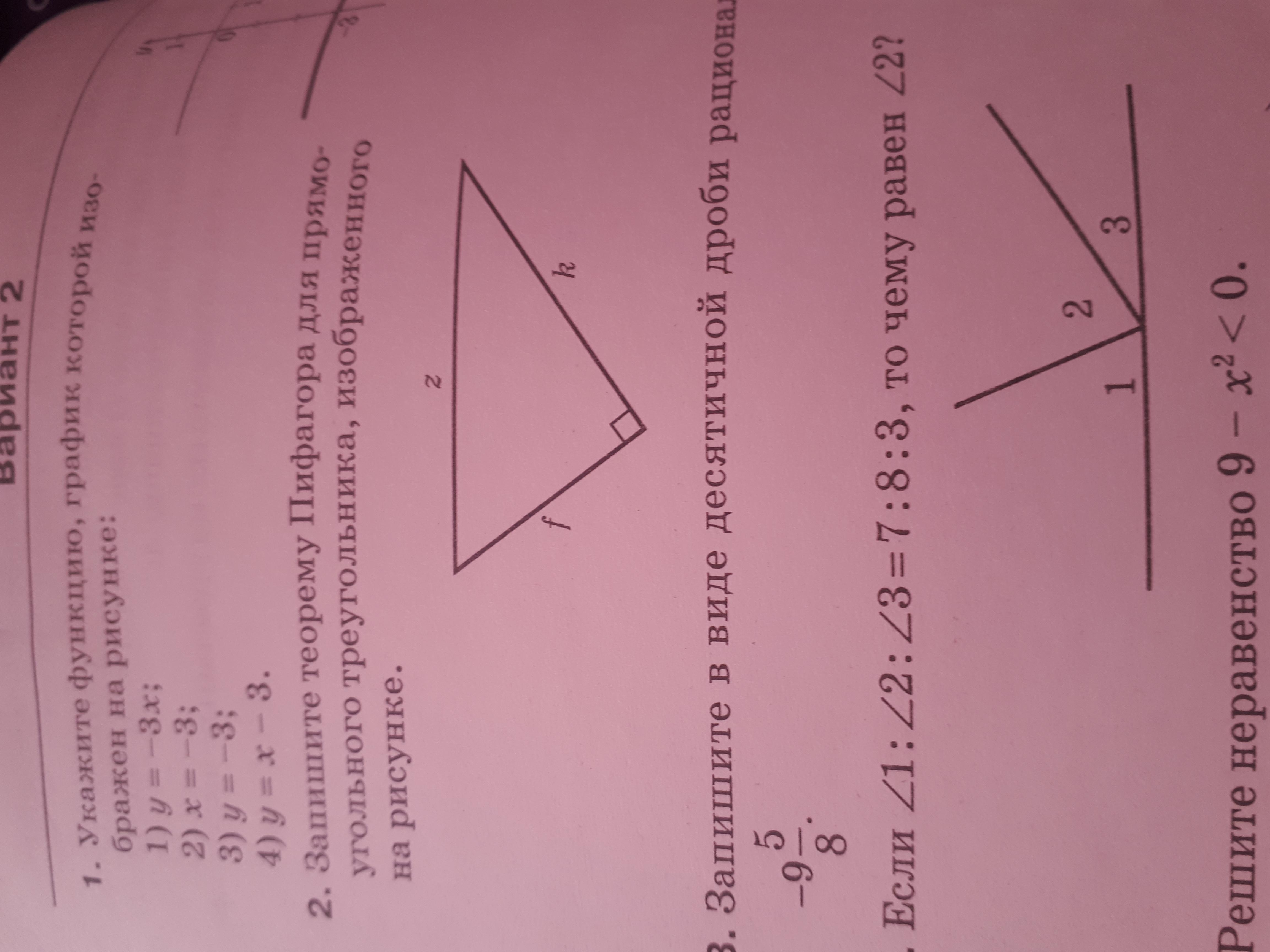 Квадрат гипотенузы z² равен сумме квадратов катетов f²+k²