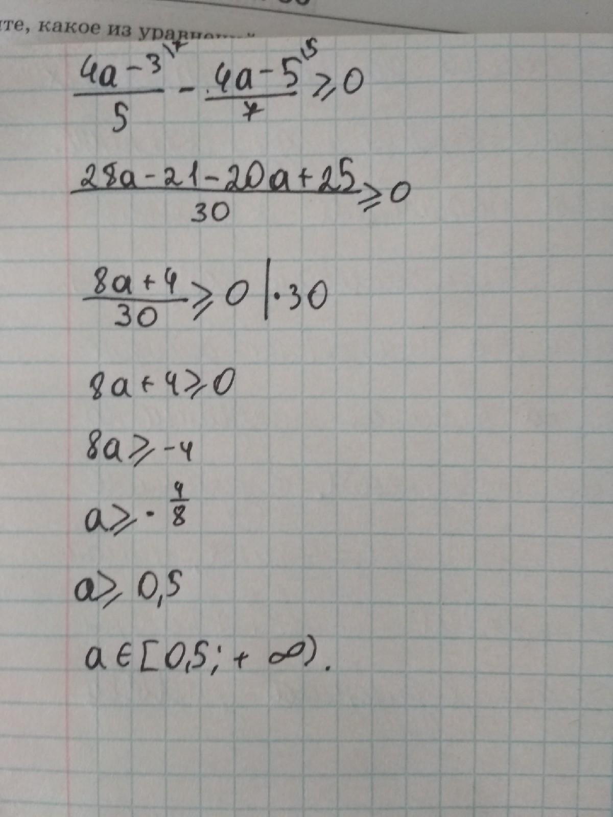 Определите, при каких значениях переменной разность дробей (4a-3)/5 и (4a-5)/7 неотрицательна. Пожалуйста расскажите хотябы кратенько, буквально в двух словах, ход решения.