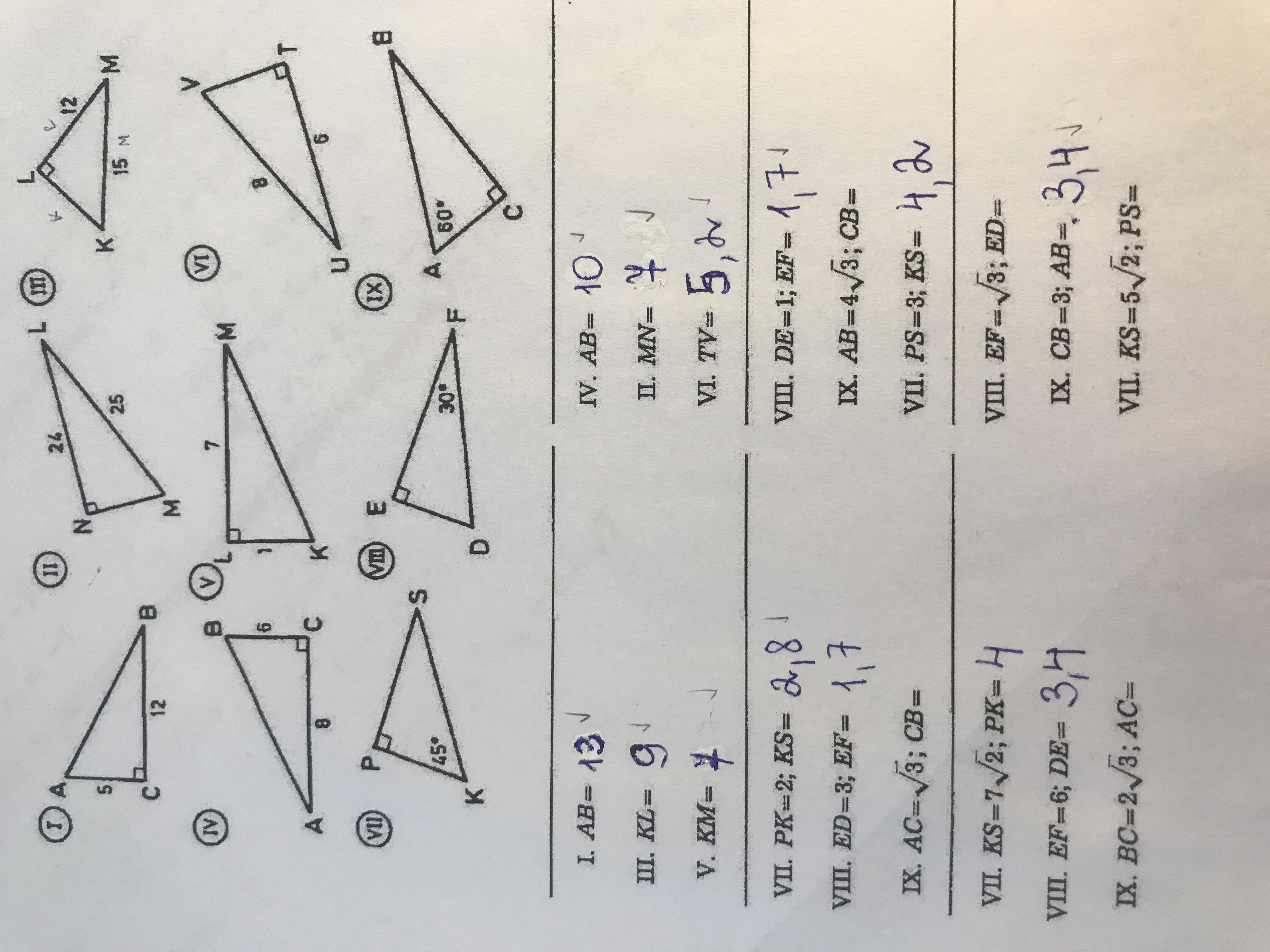 9. у.АВС=30°, значит АВ=2*АС= 2√3, СВ=√[(2√3)² - (√3)²]= √[12-3)= √9=3