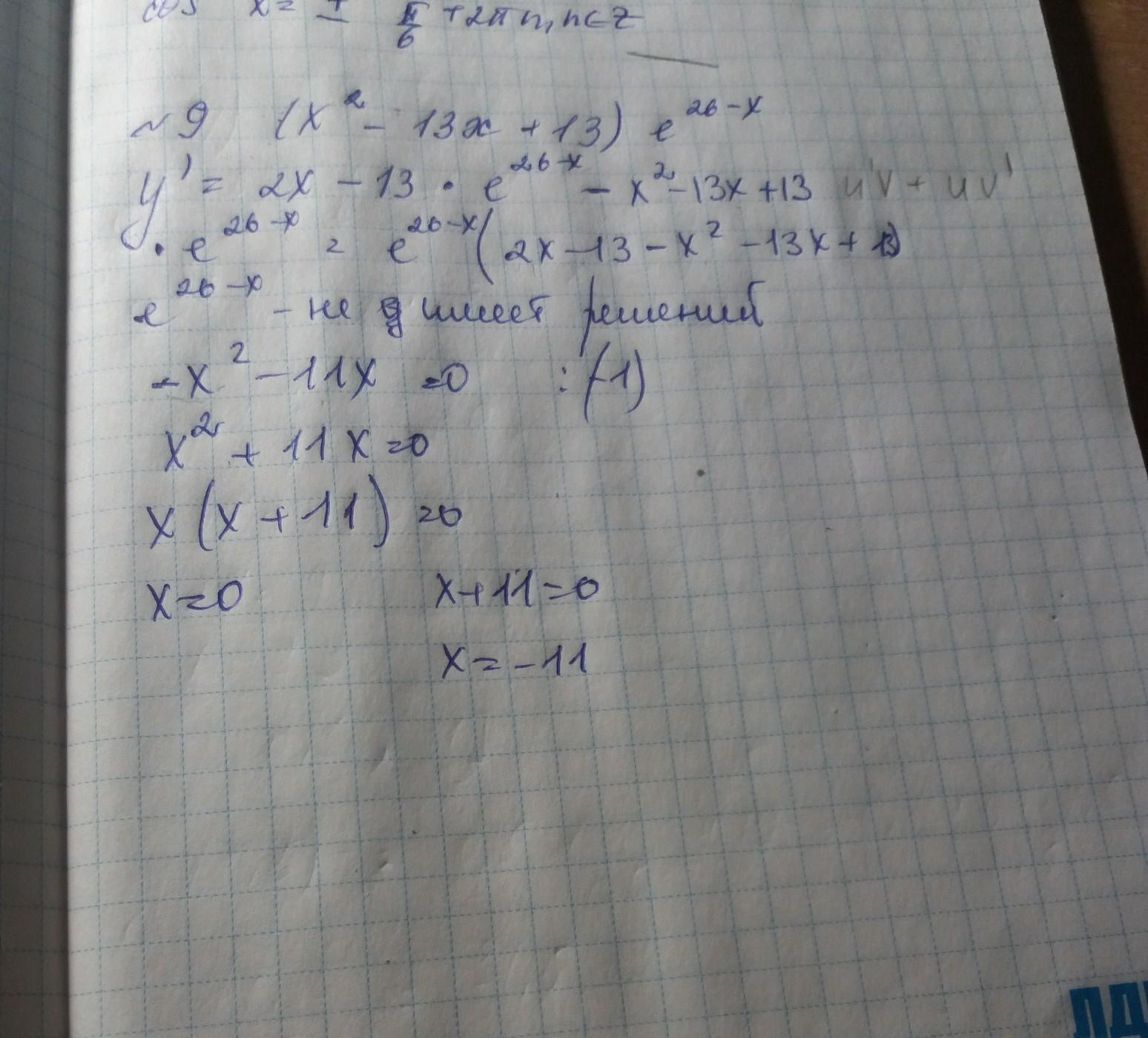 Пошаговое объяснение:скобки не поставлены при нахождении производной! ...-(х^2-13x+13)*e^(26-x)