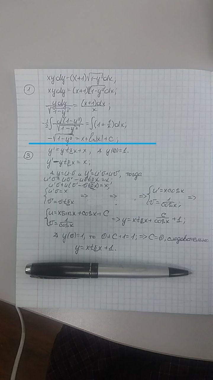1)Решить Дифференциальное уравнение: xydy-(x+1)√1-y^2dx=0.